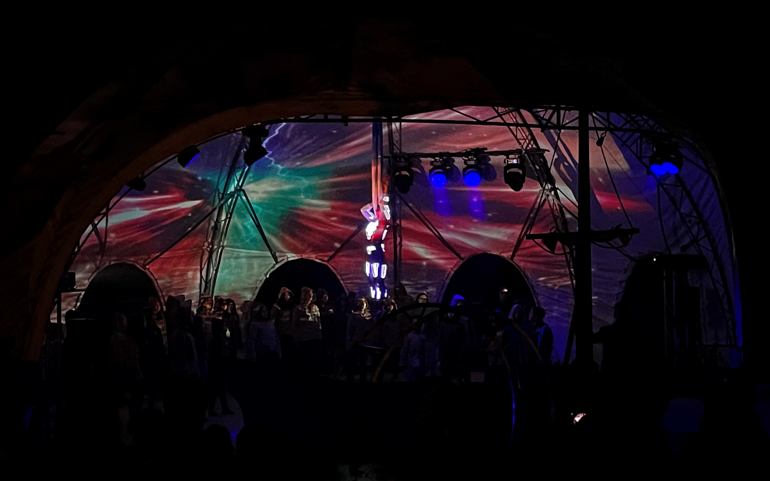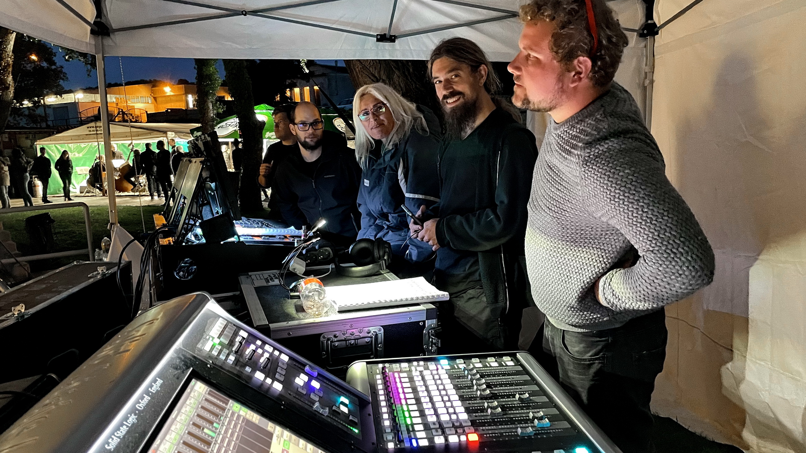 a technikai sátor (a kánikula után jött esős hidegben)